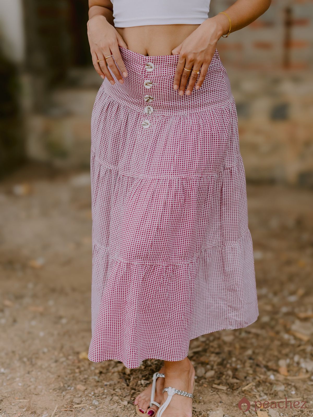 Checks maxi skirt button up