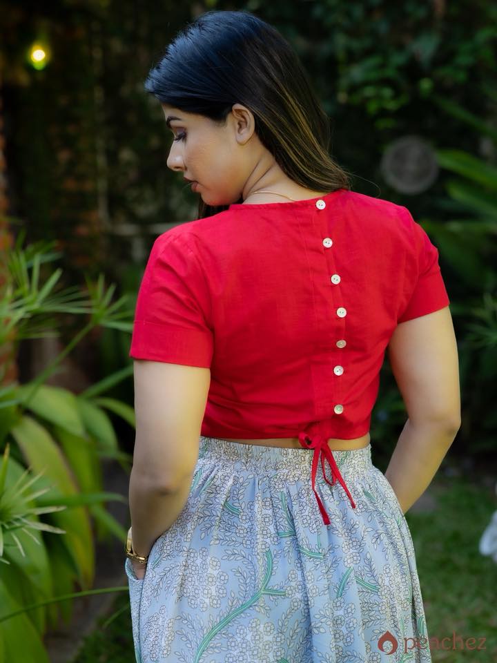 Button detail linen crop shirt
