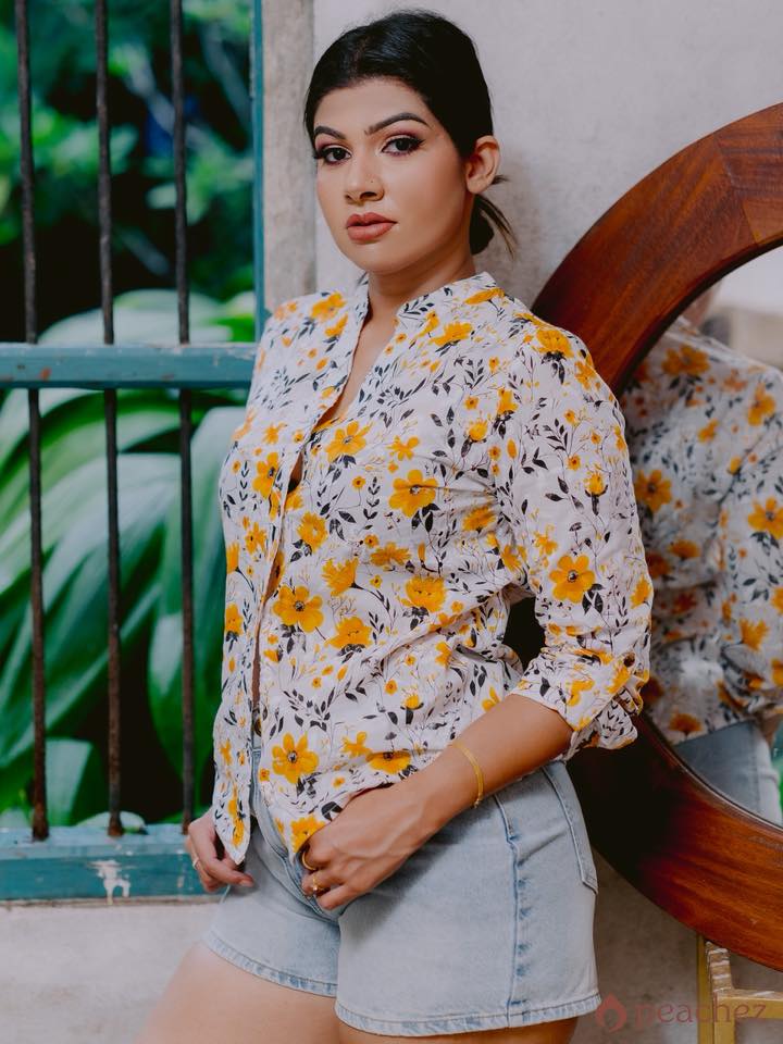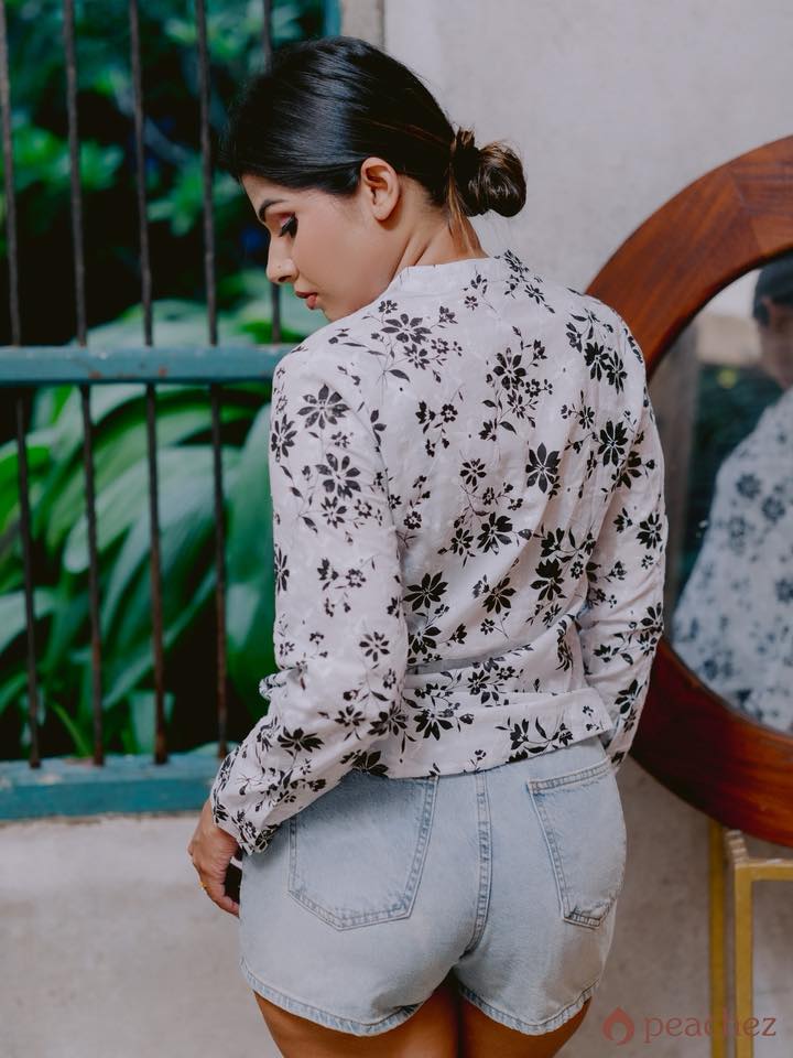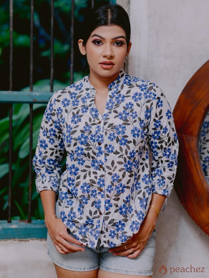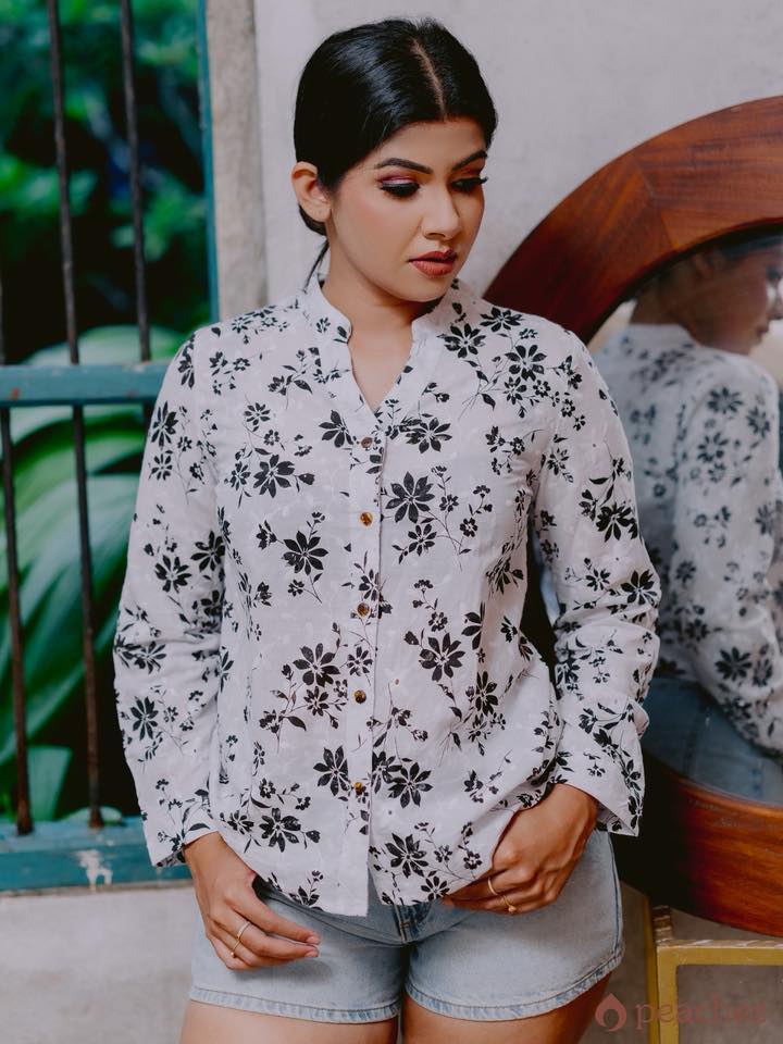 Printed cutlon button work shirt blouse