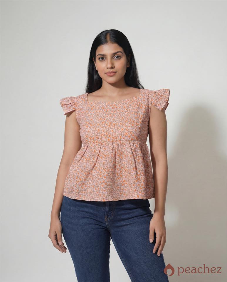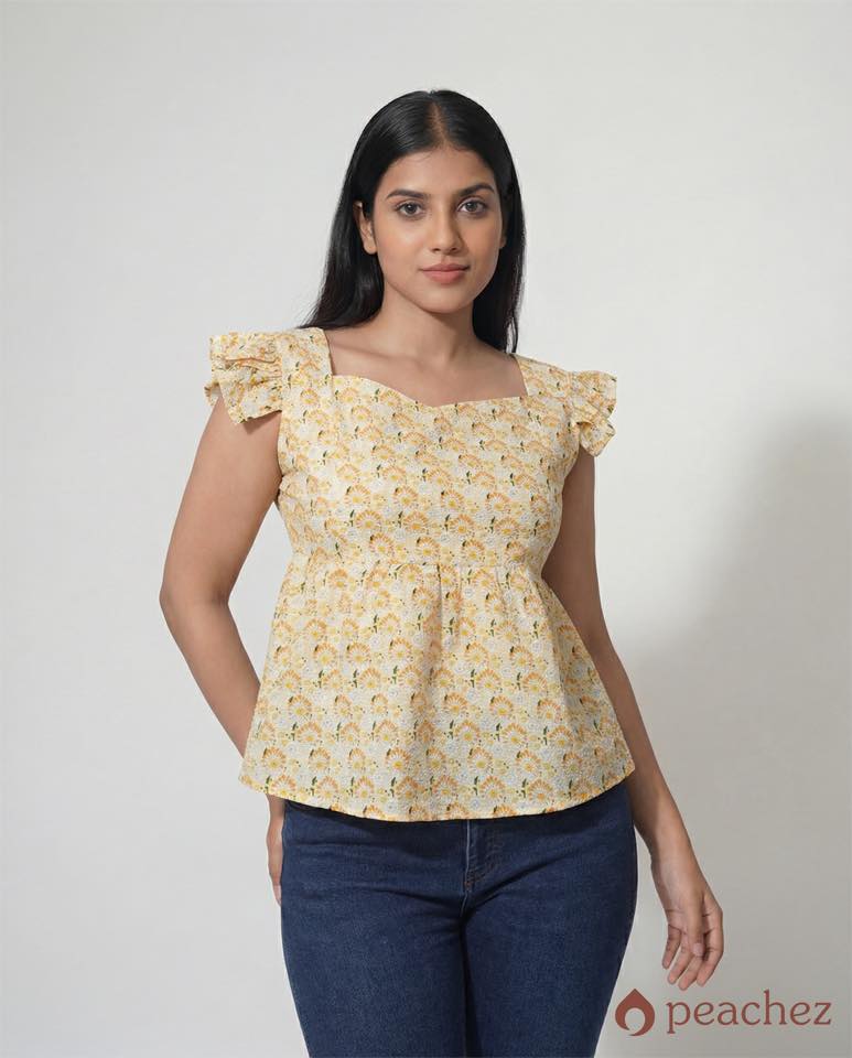 Printed ruffled trim peplum blouse