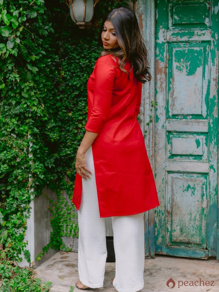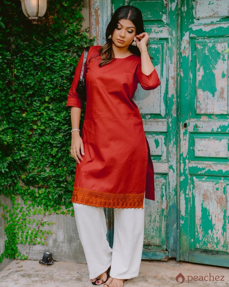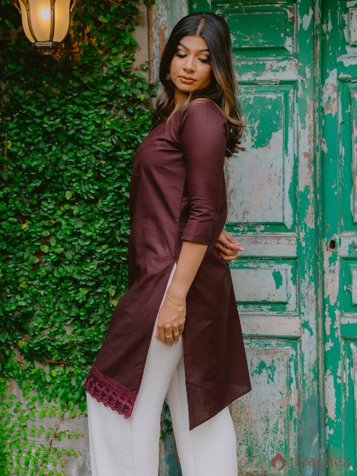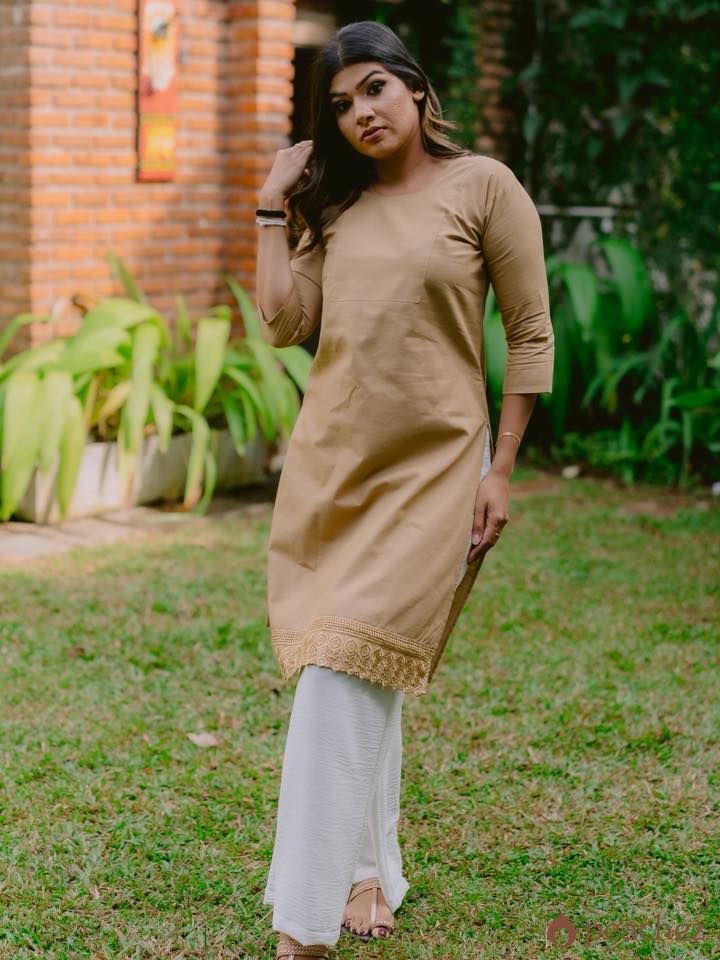 Linen long lace detailed kurtha