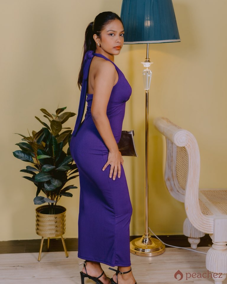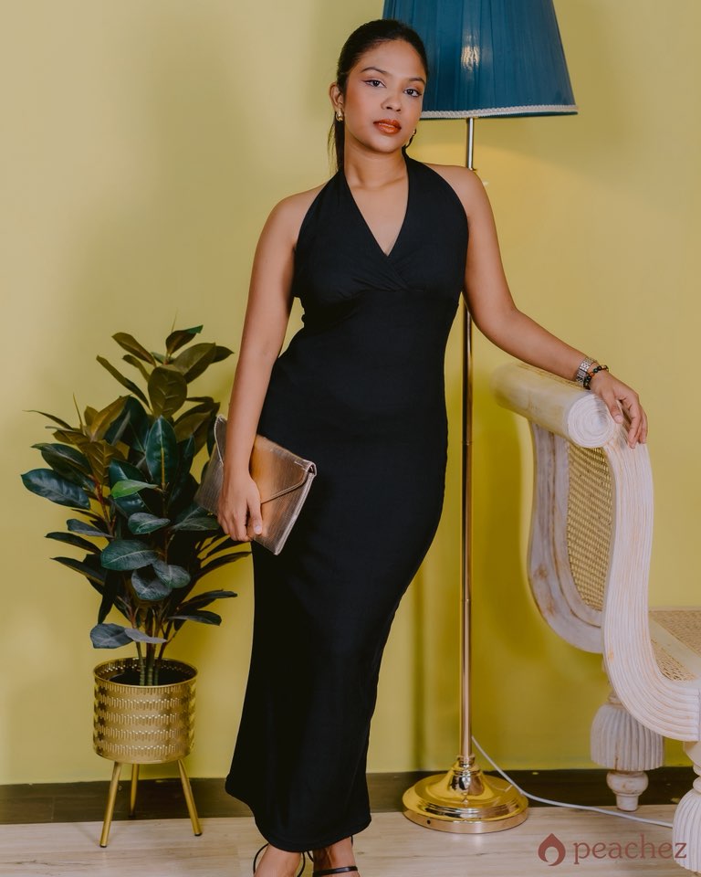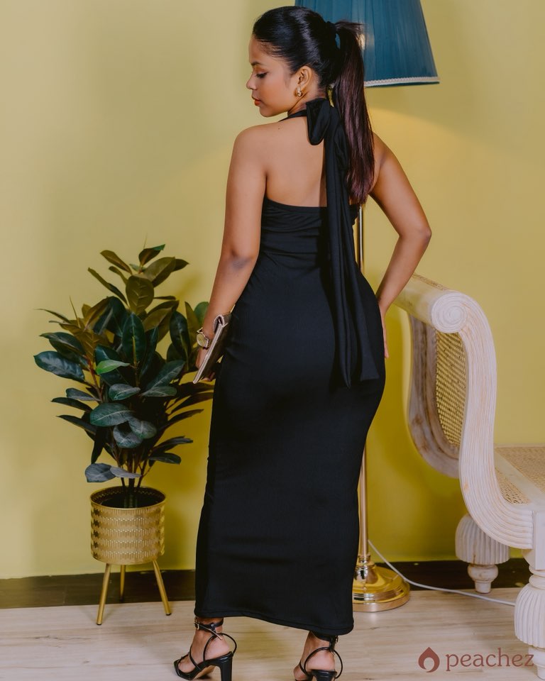 Deep v/neck backless tie neck dress