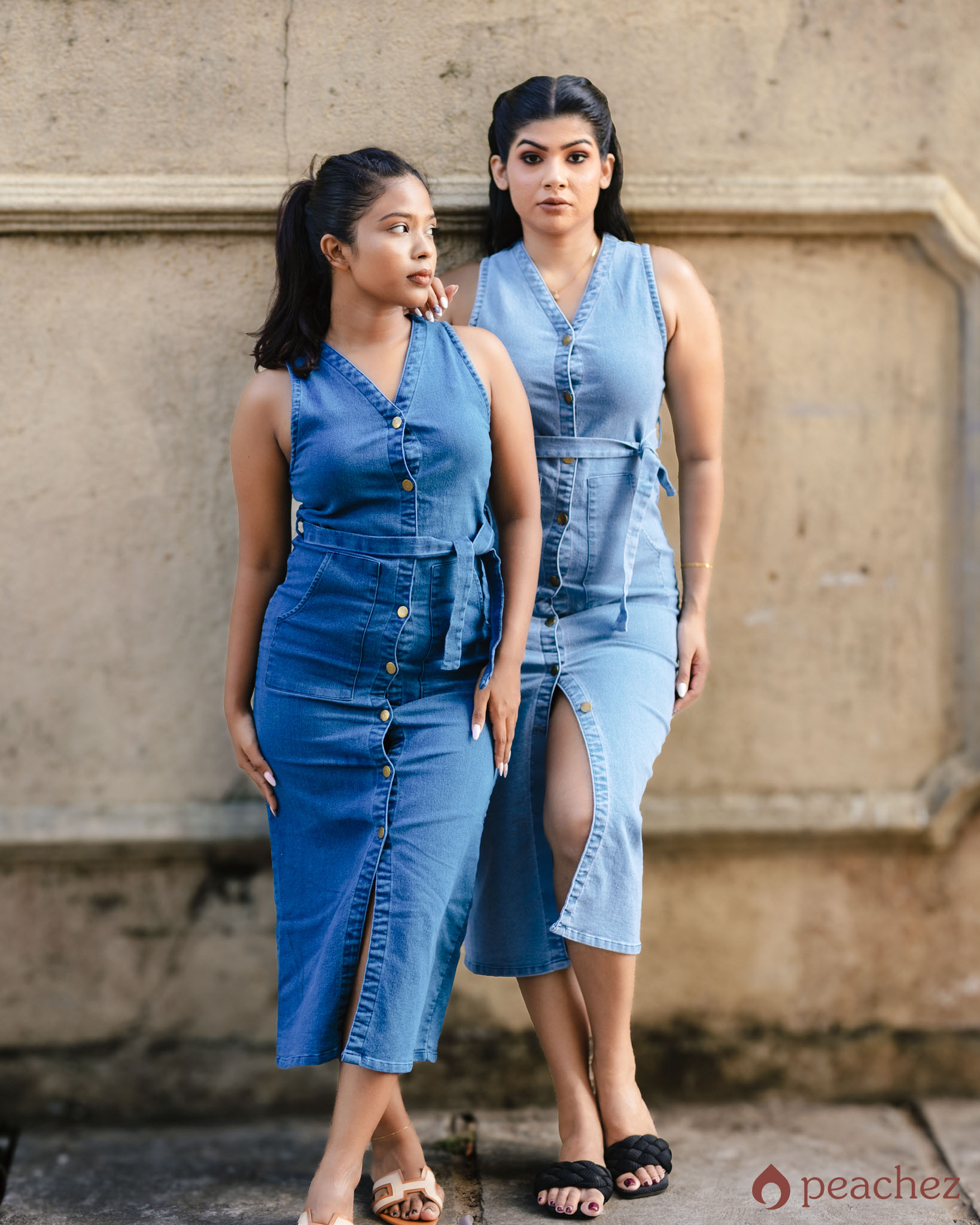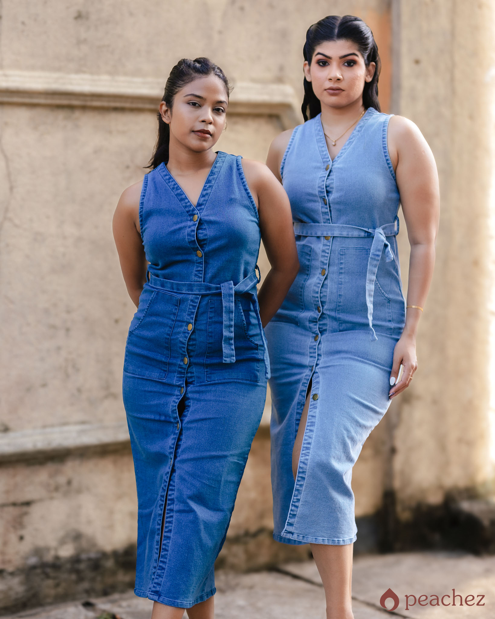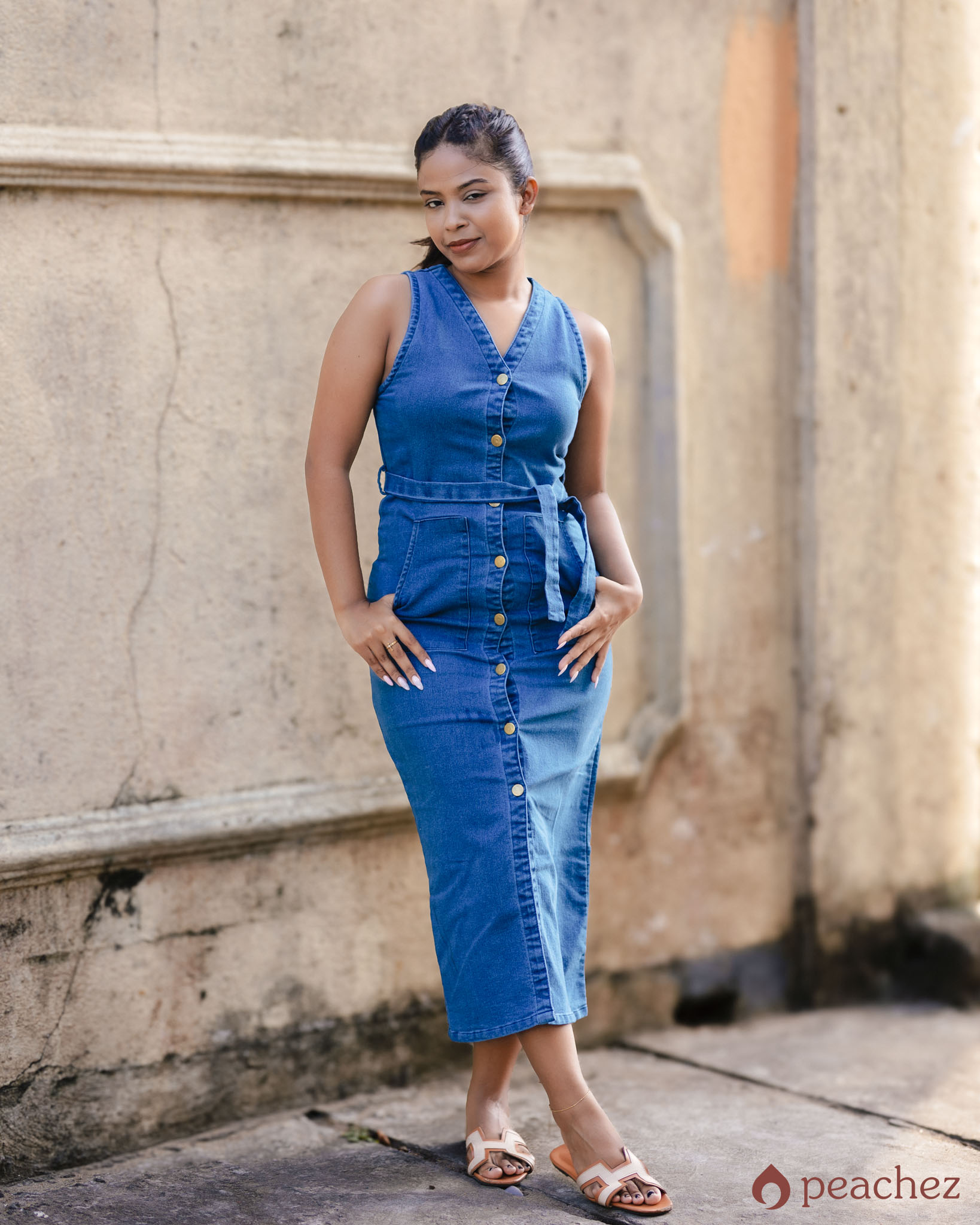 Botton front long denim dress
